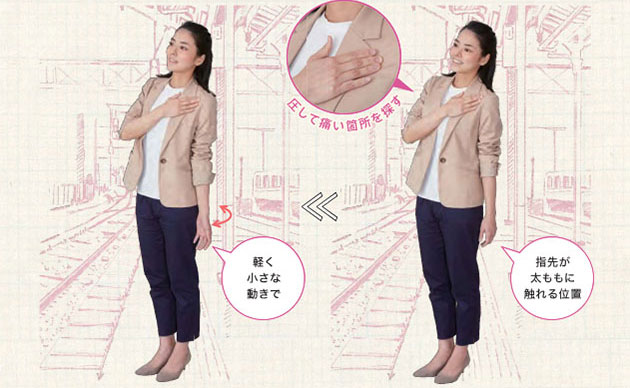 - 肩と胸の境目を指で軽く圧し、痛い箇所を見つける